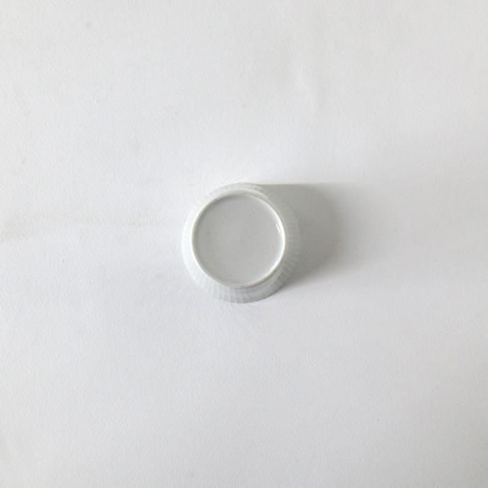 沖縄県読谷村の山田真萬さんの工房に勤務の後、多治見市陶磁器意匠研究所を修了、現在、岐阜県土岐市に工房を構える村上雄一さんの白磁そば猪口/凹です。