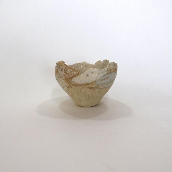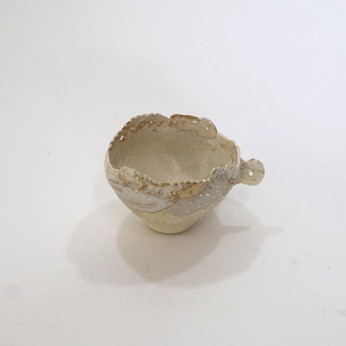 沖縄県立芸術大学陶芸コース卒後、沖縄の工房を経て、現在千葉の工房にて作陶されています中村かおりさんの新しいシリーズ「土の蕾」片手ハンドルカップ/1です。