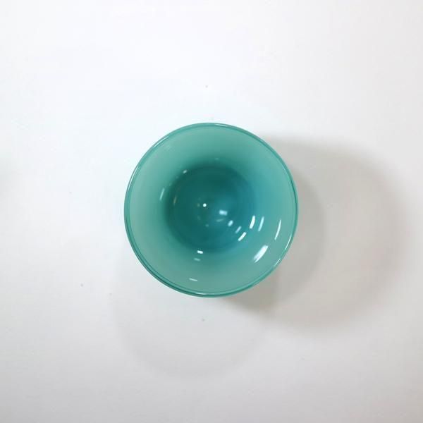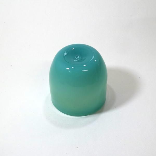 丸コップ/セラドングリーンは、コップがシュっとしたテーパードシルエットに対して丸みを帯びたふっくらとしたシルエットにペールブルーとグリーンを混ぜた不透明カラーガラスとなっています。