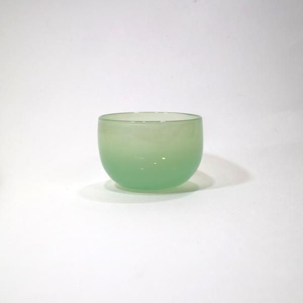 丸ボウル/ニューグリーンは、曲線の優しい丸いシルエットの穏やかな淡い緑の半透明カラーガラスとなっています。