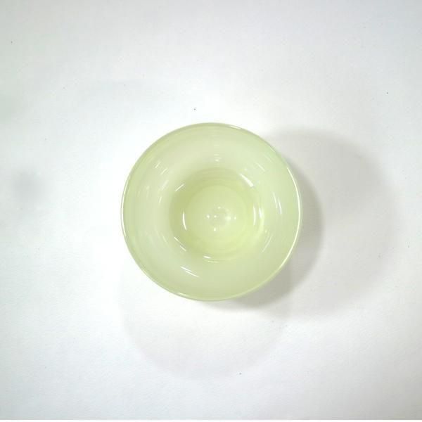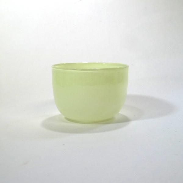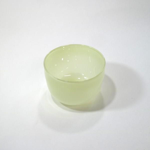 丸ボウル/スプリンググリーンは、曲線が優しい丸いシルエットの緑がかった淡いクリームの不透明カラーガラスとなっています。