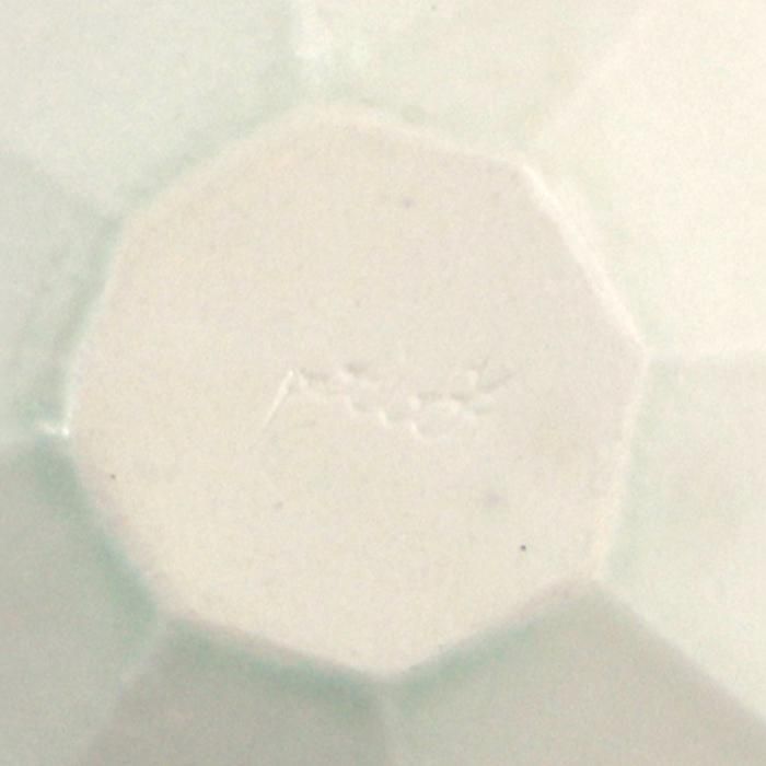 ソーサーの裏側に中村かおりさんの工房名「petit Papillon」と工房のシンボルマークの蝶々のバックサインが入っています。