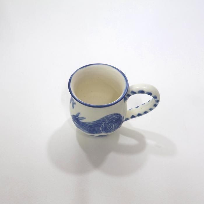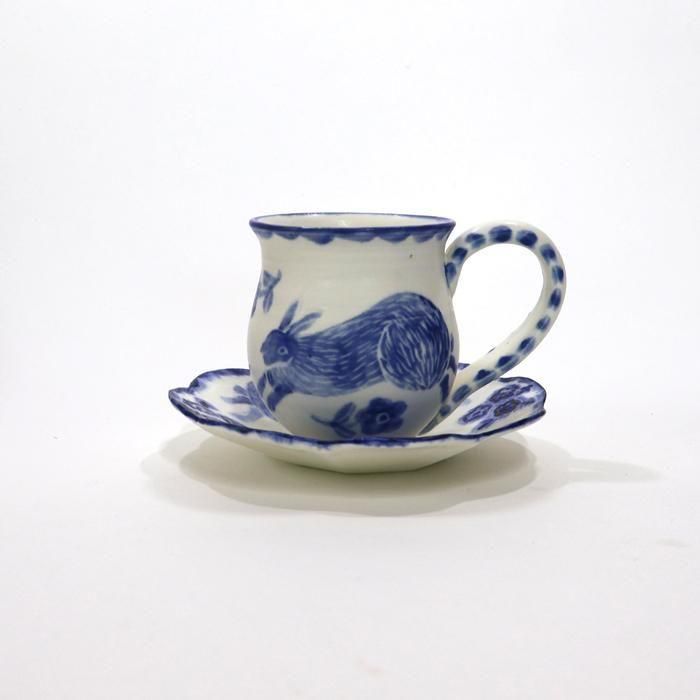 沖縄県立芸術大学陶芸コース卒後、沖縄の工房を経て、現在千葉の工房にて作陶されています中村かおりさんのうさぎカップ&ソーサーです。