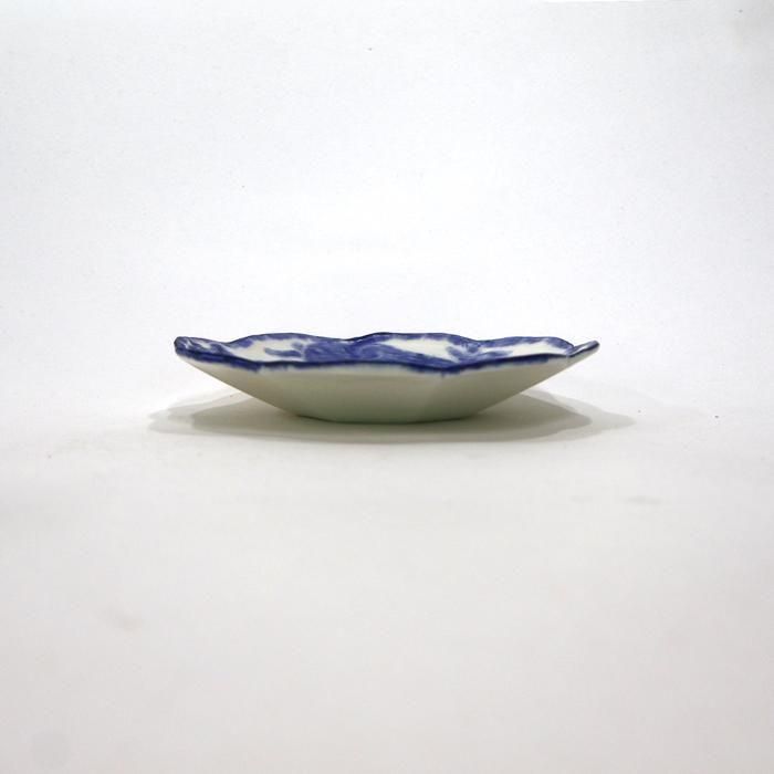 淡い呉須で縁取られたソーサーはカップレストが無いので花皿と同じくお料理の取り皿、銘々皿に加えデザートプレートとしてもご利用いただけます。