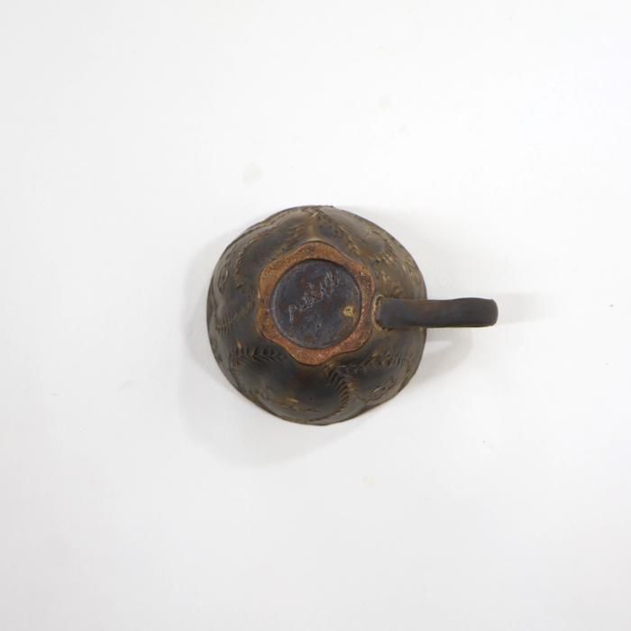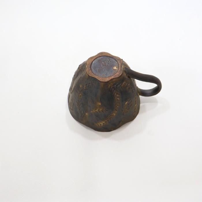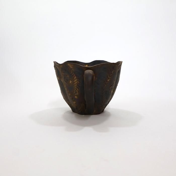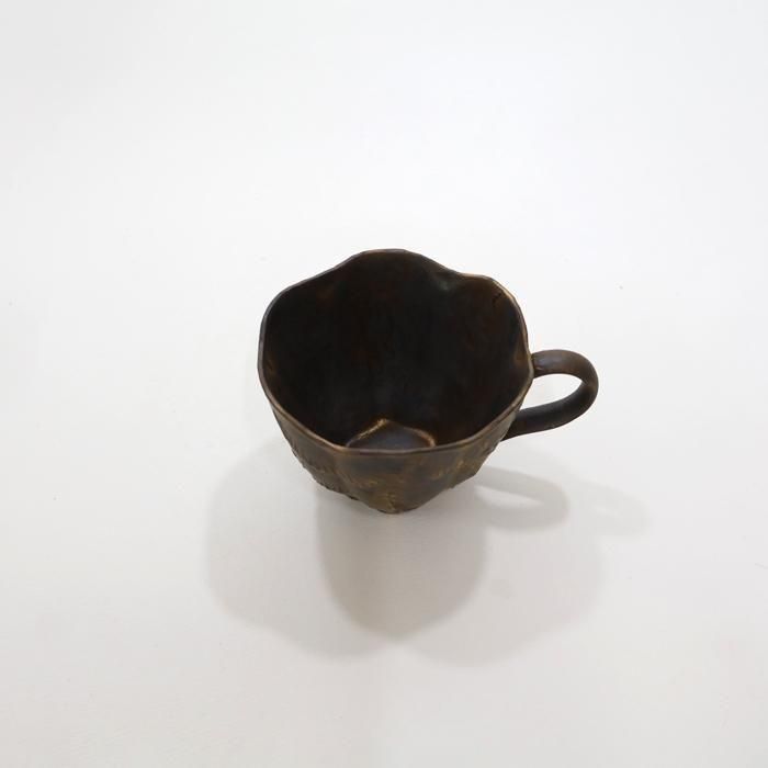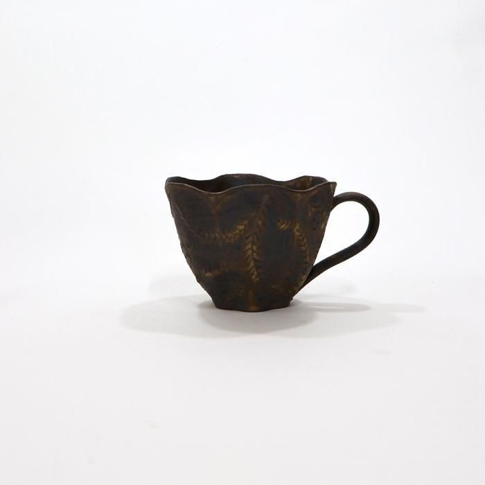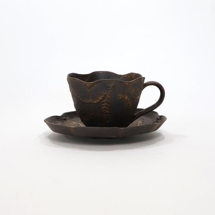 沖縄県立芸術大学陶芸コース卒後、沖縄の工房を経て、現在千葉の工房にて作陶されています中村かおりさんのローズマリーカップ&ソーサー/ブロンズです。