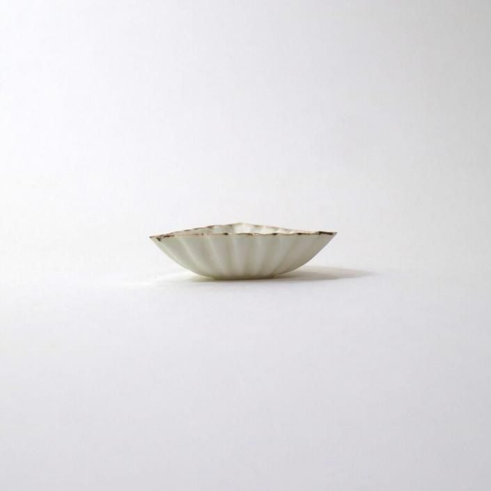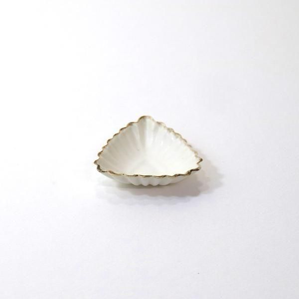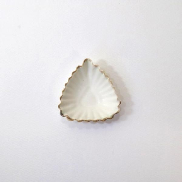 沖縄県立芸術大学陶芸コース卒後、沖縄の工房を経て、現在千葉の工房にて作陶されています中村かおりさんのシェルまめ皿/三角/白です。