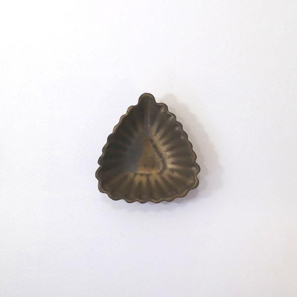 沖縄県立芸術大学陶芸コース卒後、沖縄の工房を経て、現在千葉の工房にて作陶されています中村かおりさんのシェルまめ皿/三角/ブロンズです。