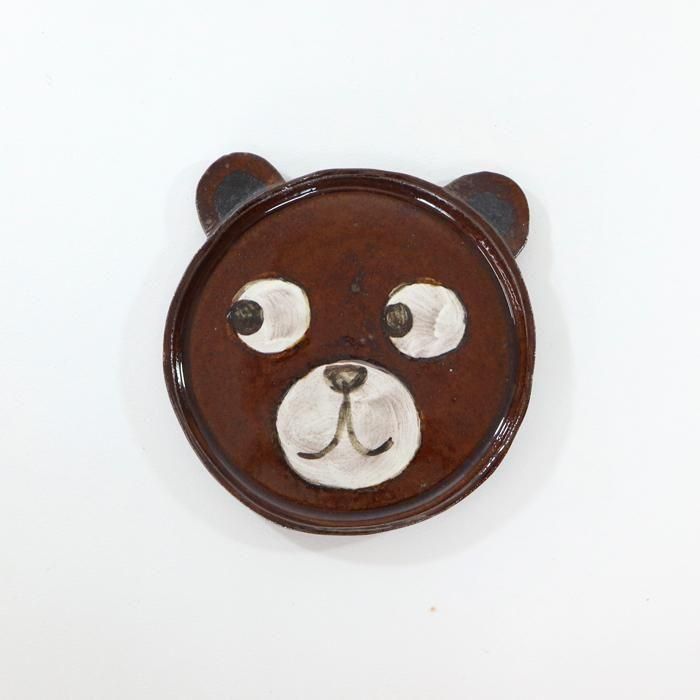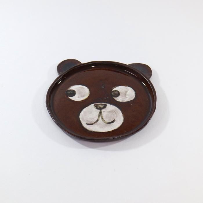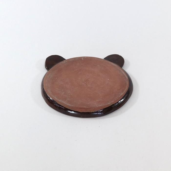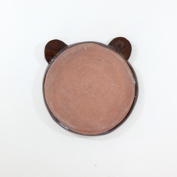沖縄県立芸術大学陶芸コース卒後、沖縄の工房を経て、現在千葉の工房にて作陶されています中村かおりさんのくまが左を見ている耳付きくま15センチプレート/Rです。