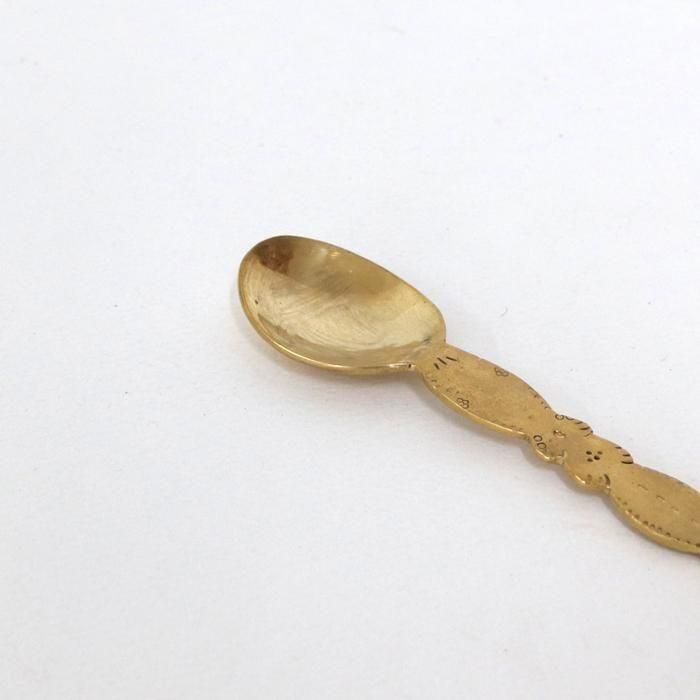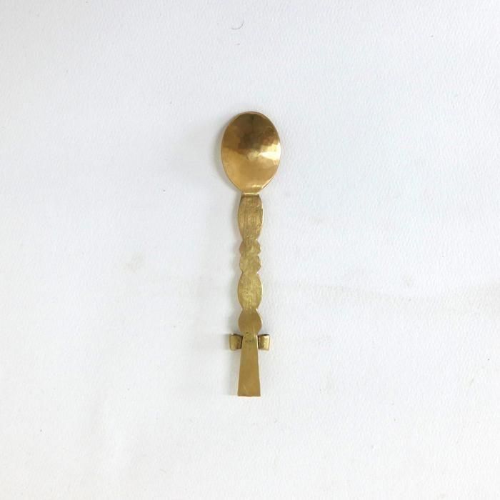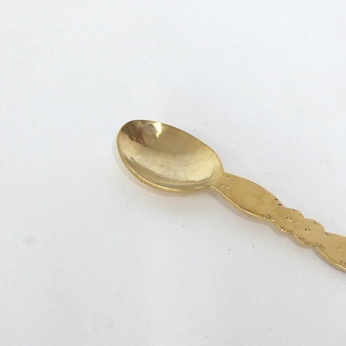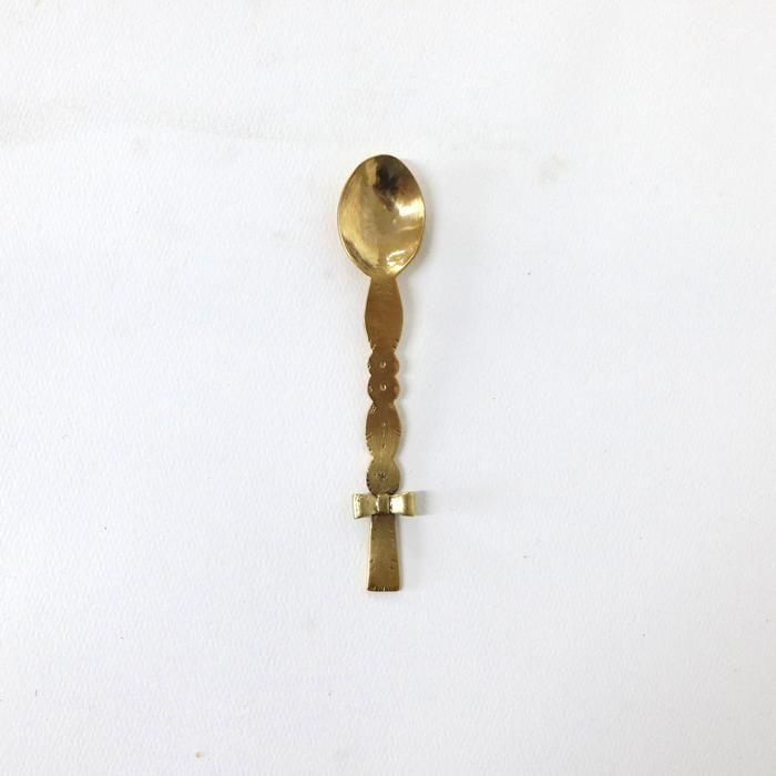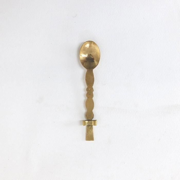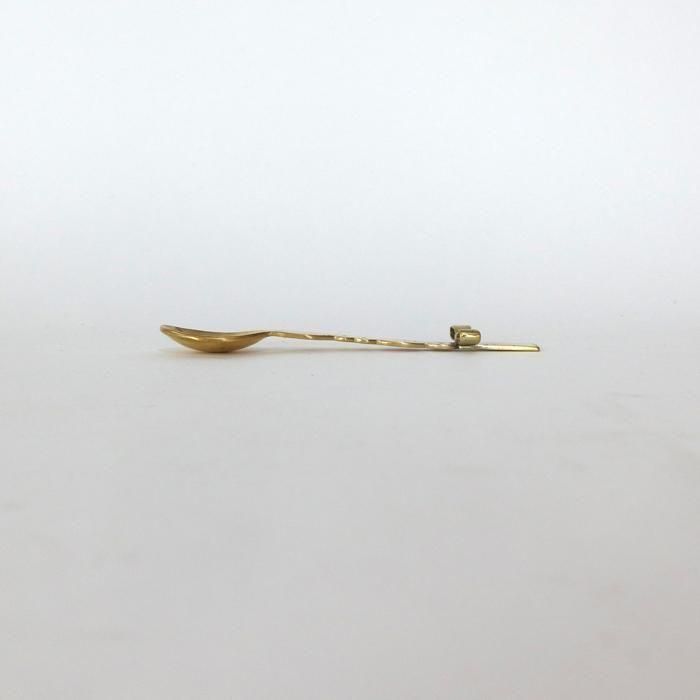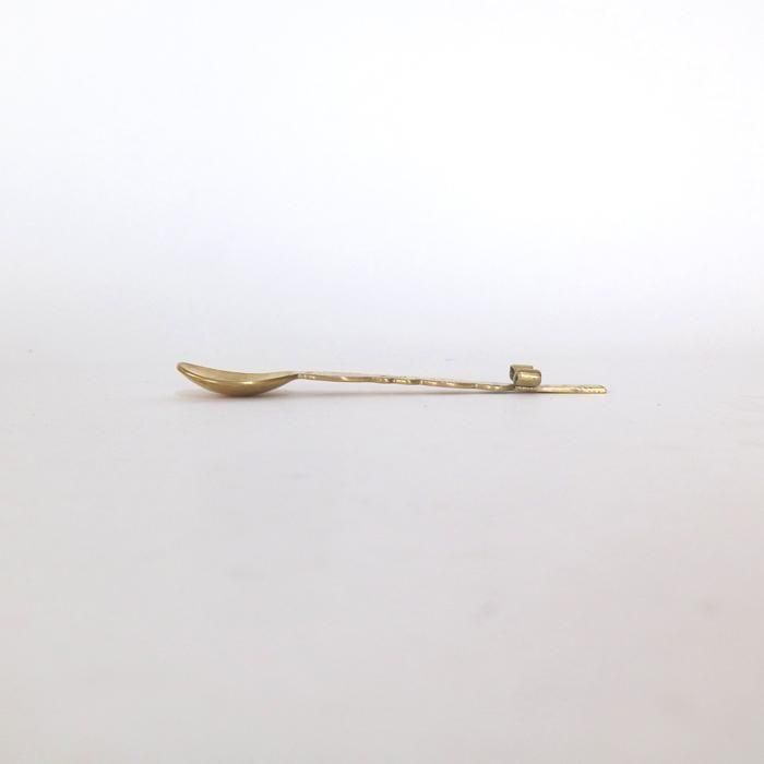 金属で大きなモニュメントなどを制作するBONZE工房にてアシスタントされた後独立し、埼玉の工房にて「口当たりの良い、楽しいカトラリー」を心がけて製作されていますitto/イットさんの真鍮できたリボンデザートスプーン/1です。