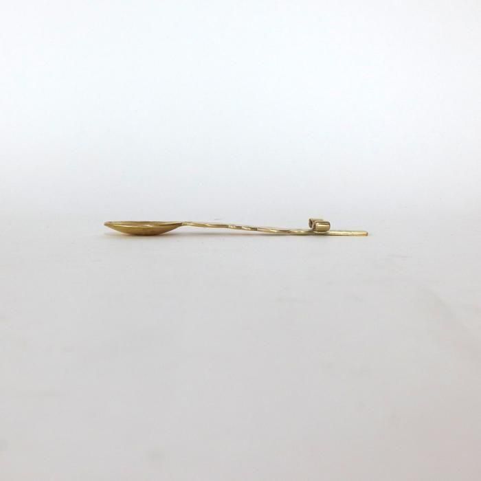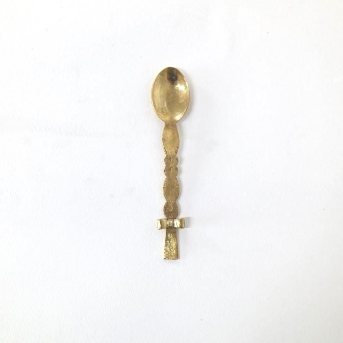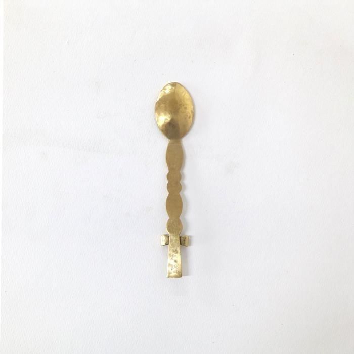 金属で大きなモニュメントなどを制作するBONZE工房にてアシスタントされた後独立し、埼玉の工房にて「口当たりの良い、楽しいカトラリー」を心がけて製作されていますitto/イットさんの真鍮できたリボンデザートスプーン/5です。