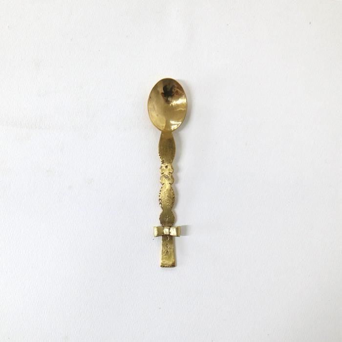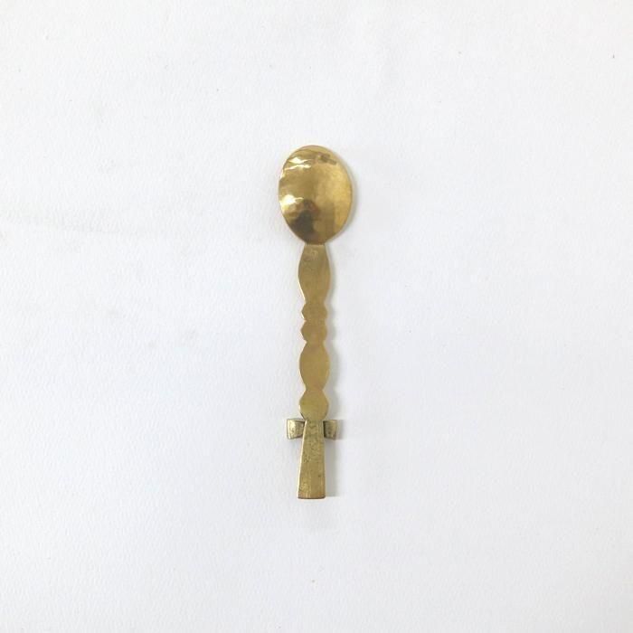 金属で大きなモニュメントなどを制作するBONZE工房にてアシスタントされた後独立し、埼玉の工房にて「口当たりの良い、楽しいカトラリー」を心がけて製作されていますitto/イットさんの真鍮できたリボンデザートスプーン/8です。