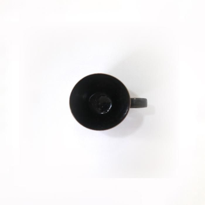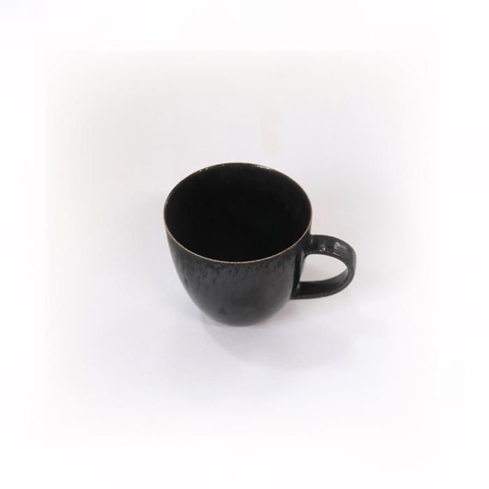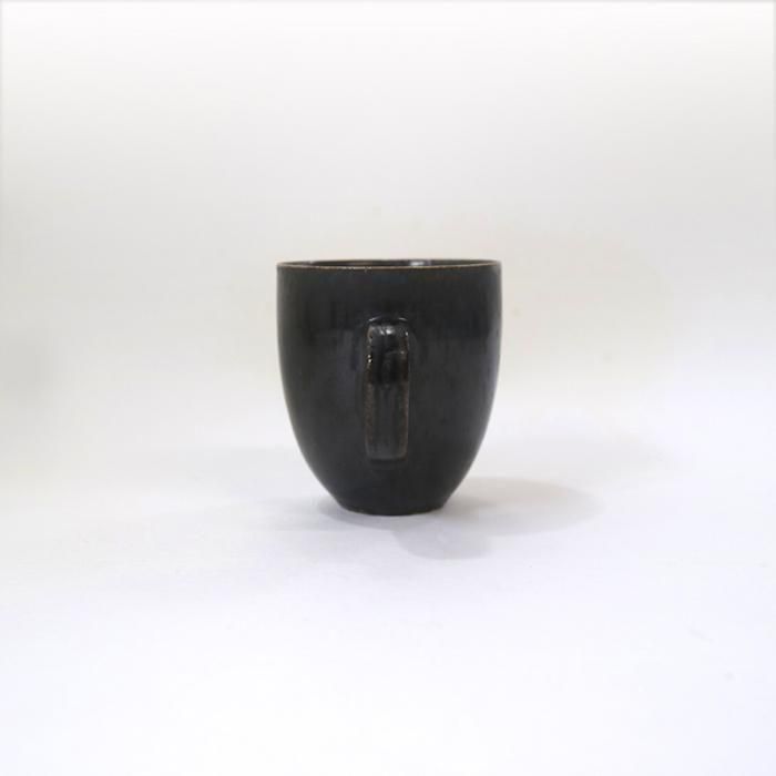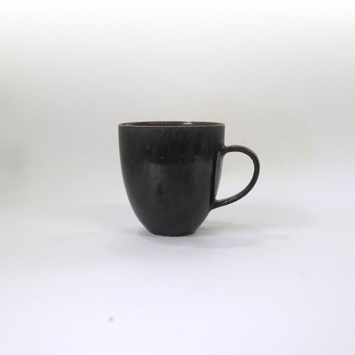 愛知県瀬戸の工房でキチンとした成形、シックな器、華のある器、機能性の高い品格のある器を目指して製作されている高島悠吏さんの黒釉マグです。