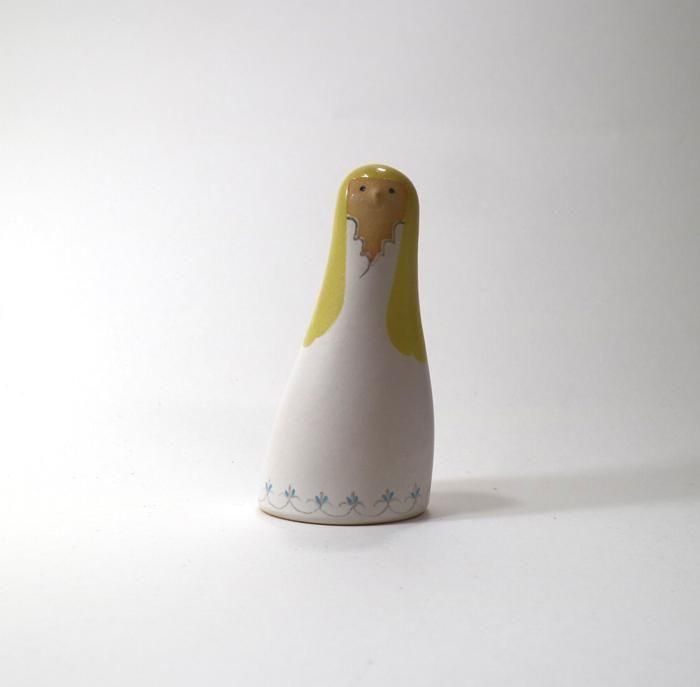 植物や動物をモチーフにデザイン、作陶されている福岡県在住の鹿児島睦さんがデザイン、スウェーデンのKeramikstudion(ケラミックストウディオン)が一つ一つ手作業にて製作のオブジェ/Blommor och Vind/ブルンモル オック ヴィンド(花と嵐)シリーズのフィギュリン(陶磁器製の人形)のFlickor(女の子) /1です。