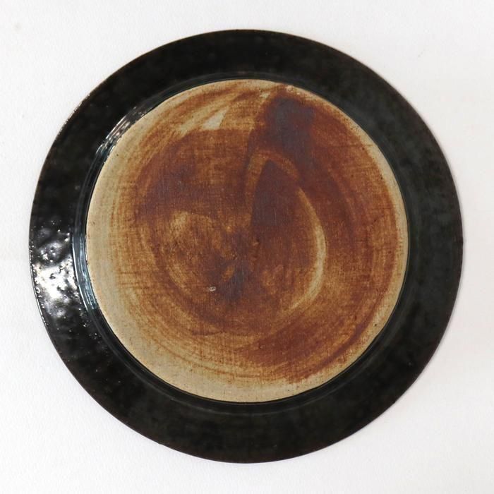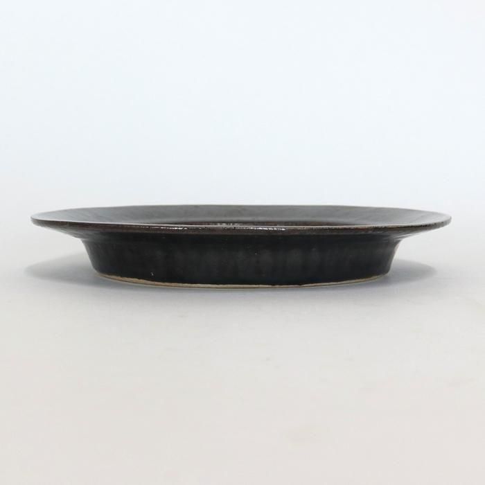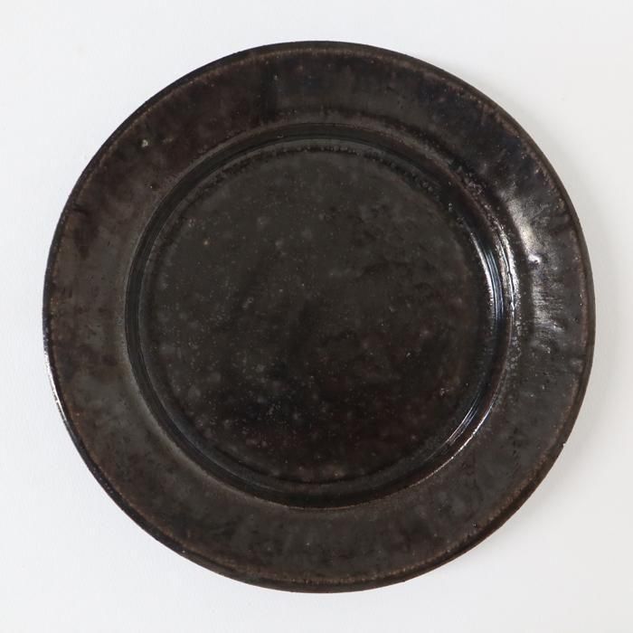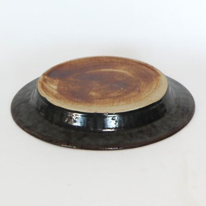 所々点描のようになった趣のある黒釉を施釉した深さのあるシックな大皿です。