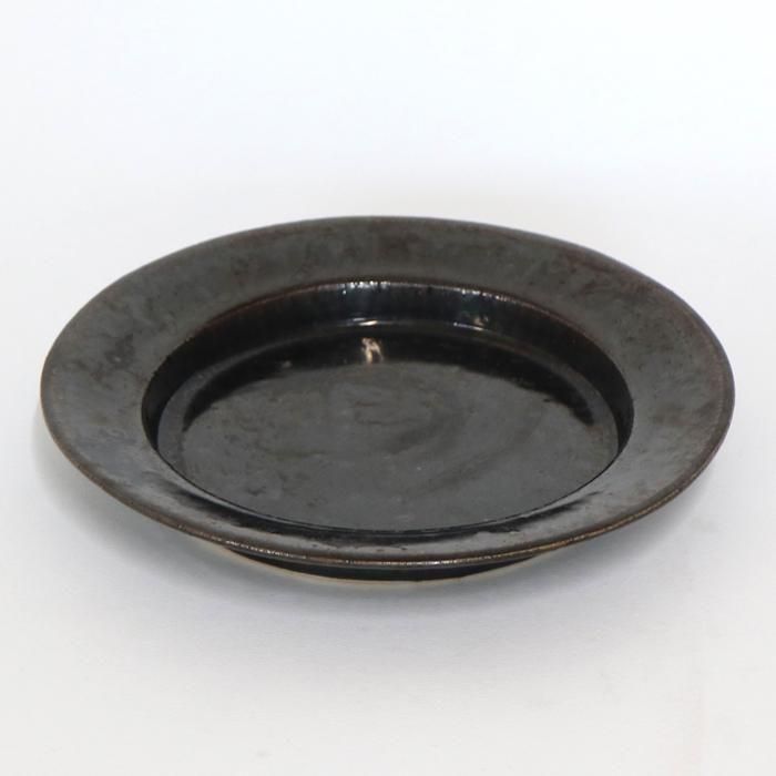 愛知県瀬戸の工房で成形が美しい、シックな器、華のある器、機能性の高い器を目指して製作されている高島悠吏さんの黒釉8寸リム深皿です。