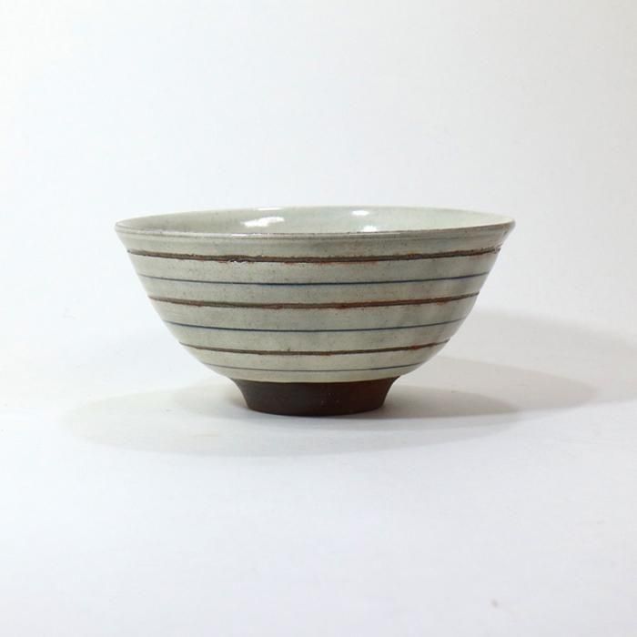 一見色分けのボーダーのように思える茶の部分は他の独楽の器と同じくしのぎを入れて素材の土の色を活かした配色ですが、こちらの土の茶色はほぼ同じ感じとなっています。