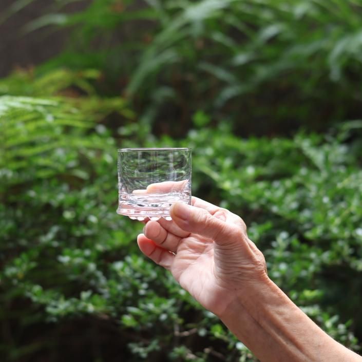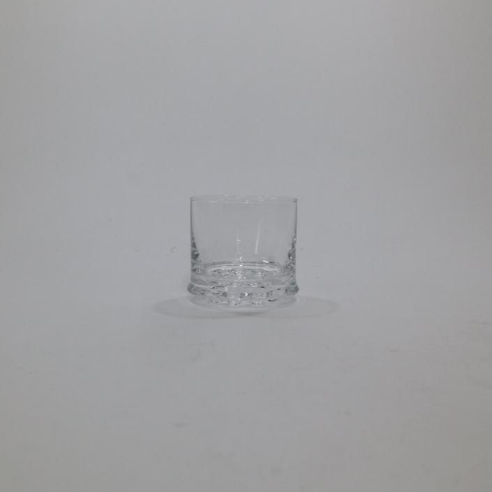 小ぶりですが底面の円形の9点の突起の為サイズに比して重さがありますが(と言っても重くはないです)それによって安定感があります。マウスブローで製作されていますので1点、1点色合い、風合い、佇まいが異なる繊細で魅力的なグラスです。
