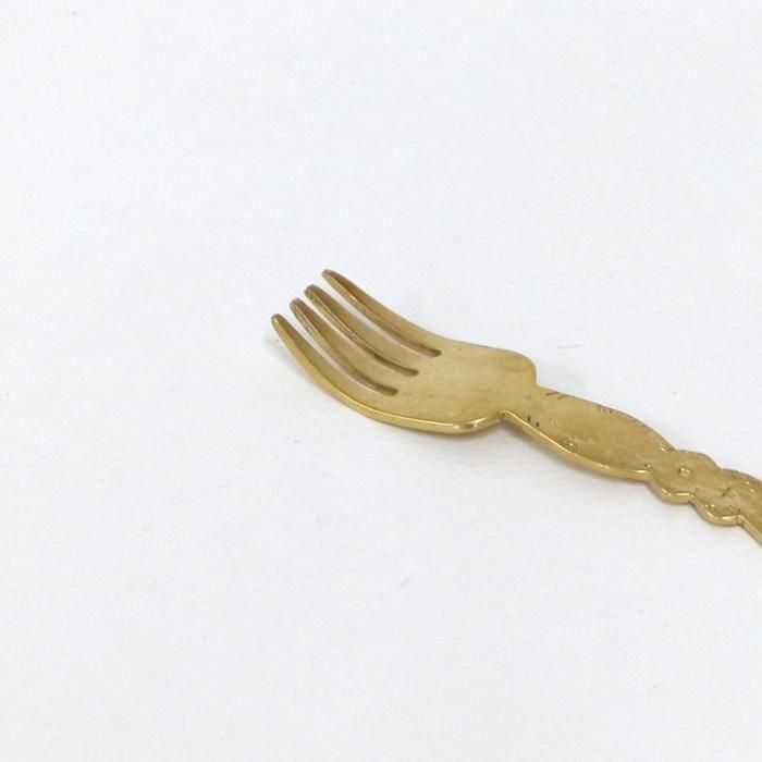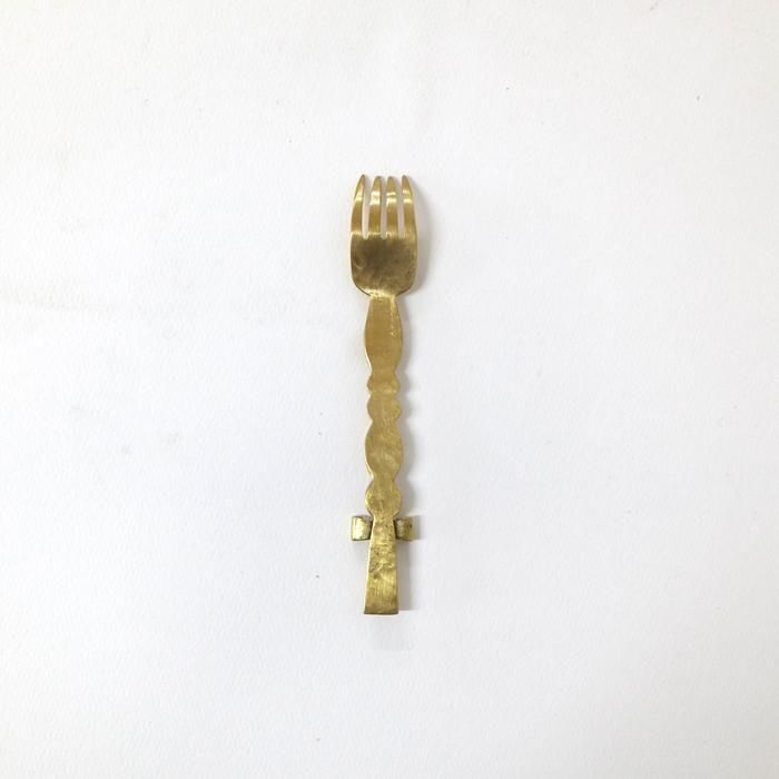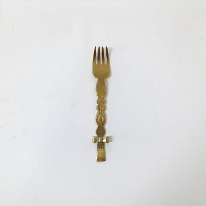 金属で大きなモニュメントなどを制作するBONZE工房にてアシスタントされた後独立し、埼玉の工房にて「口当たりの良い、楽しいカトラリー」を心がけて製作されていますitto/イットさんの真鍮できたリボンデザートフォーク/1です。