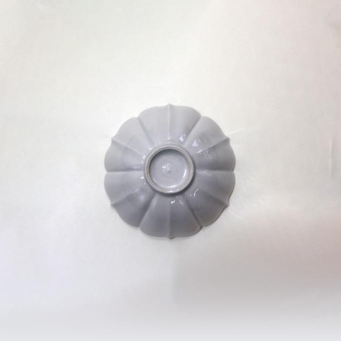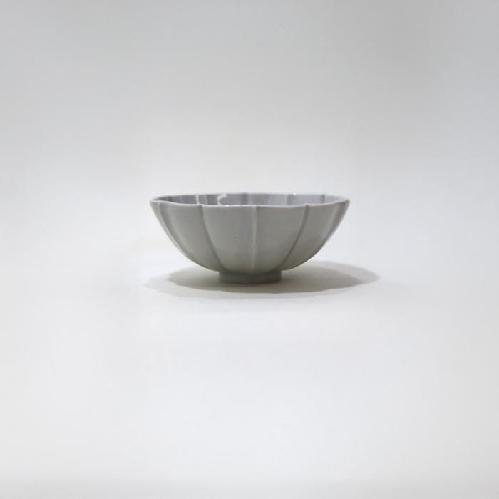 稜花碗は口縁部に規則的な切込みを入れた形で、切込みによって花弁がいくつも出来るところは輪花と同じですが稜花はその花びらごとに先端を尖らせてあるのが特徴です。