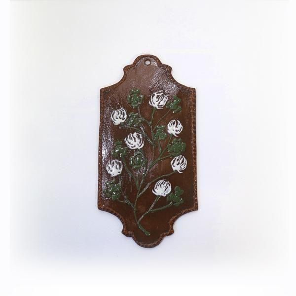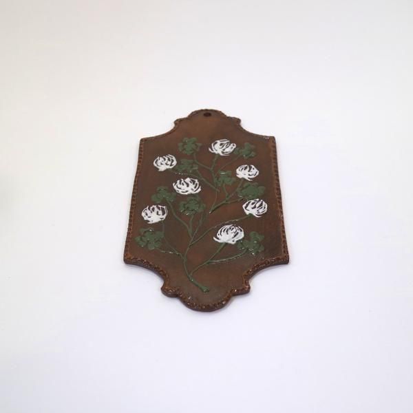 シロツメクサ長方板皿は、壁掛けなどインテリア作品用に上部に穴を開けて、加えて食器としてもご使用いただけるように以前お届けいただいた作品よりもサイズアップしてくださっています。