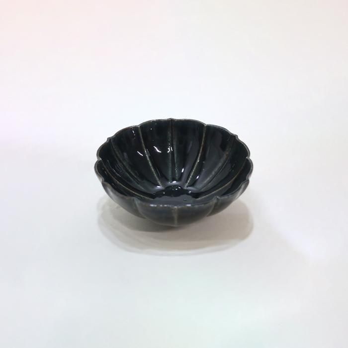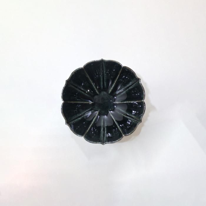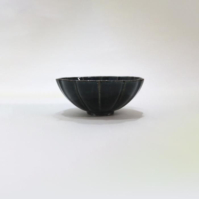 愛知県瀬戸の工房で成形が美しい、シックな器、華のある器、機能性の高い品格のある器を目指して製作されている高島悠吏さんの藍釉六稜花碗/大です。
