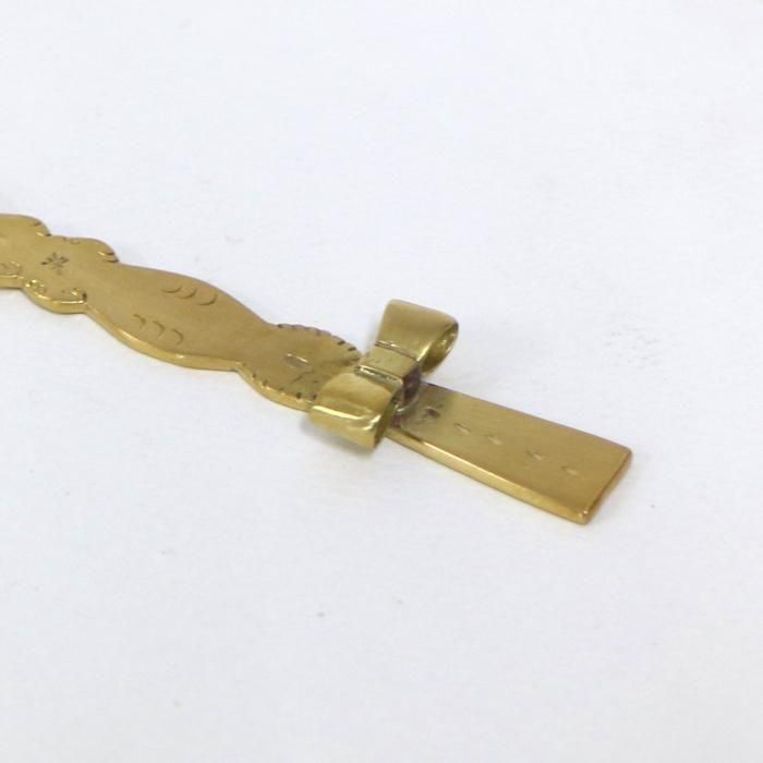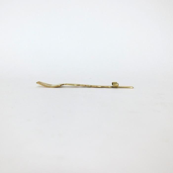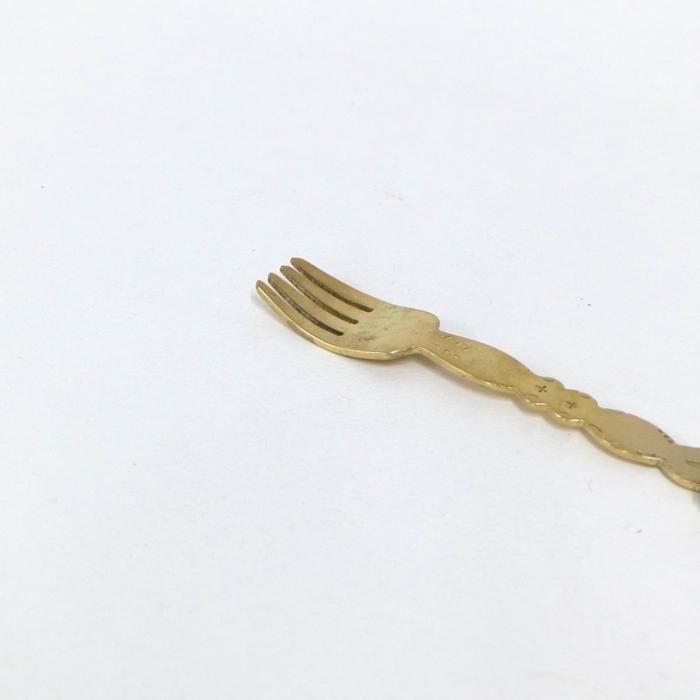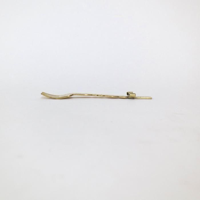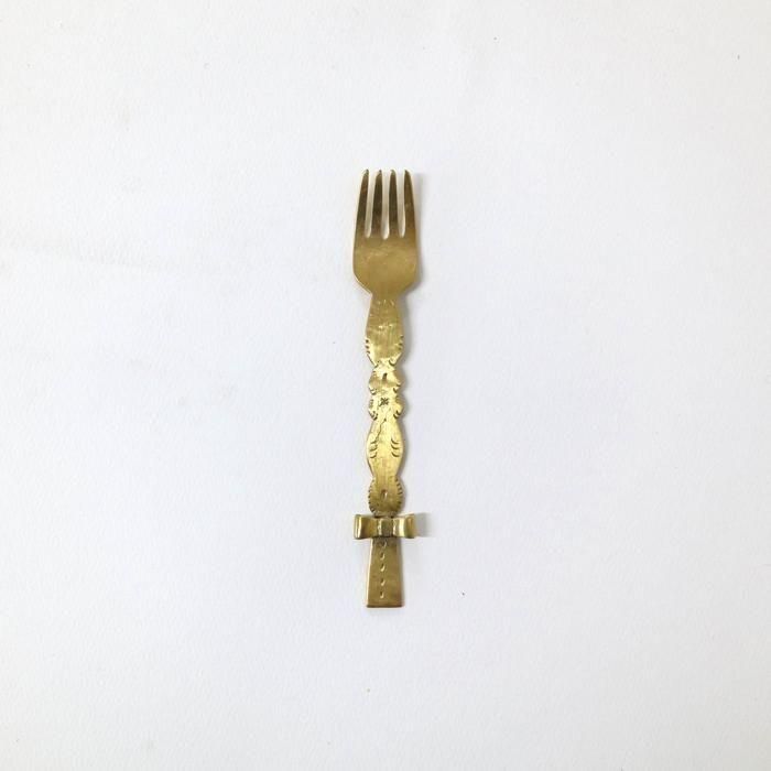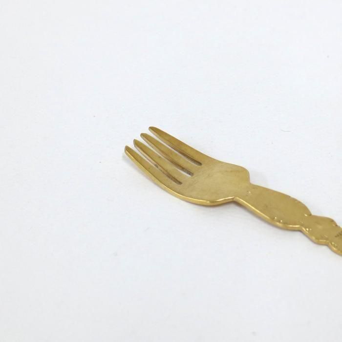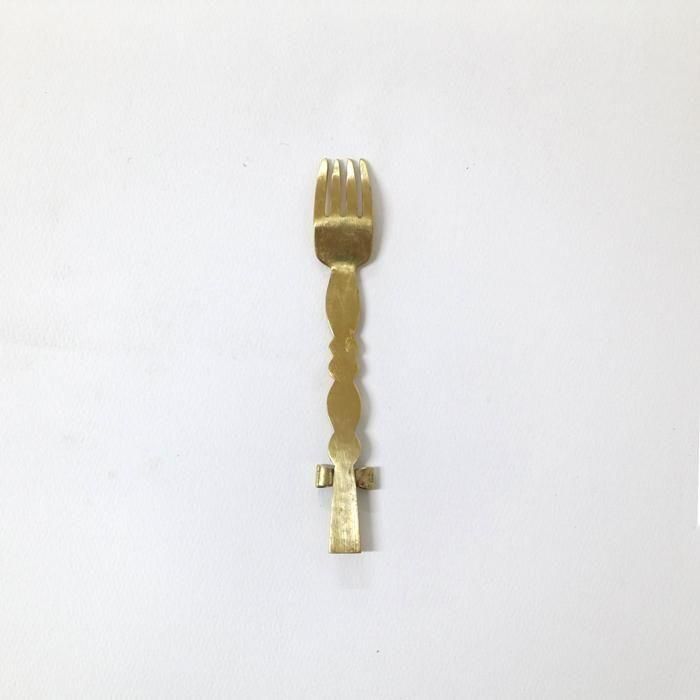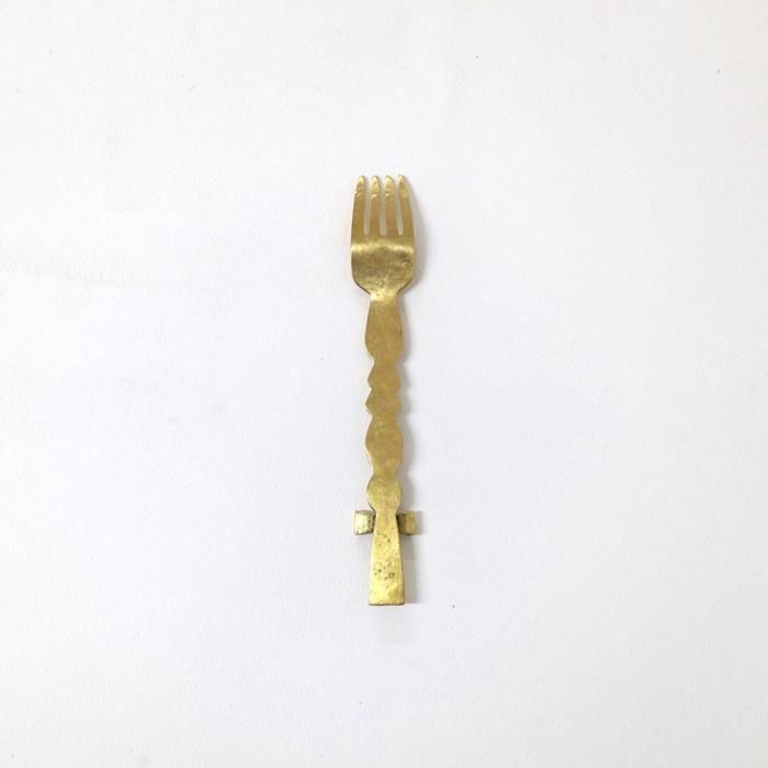 金属で大きなモニュメントなどを制作するBONZE工房にてアシスタントされた後独立し、埼玉の工房にて「口当たりの良い、楽しいカトラリー」を心がけて製作されていますitto/イットさんの真鍮できたリボンデザートフォーク/5です。