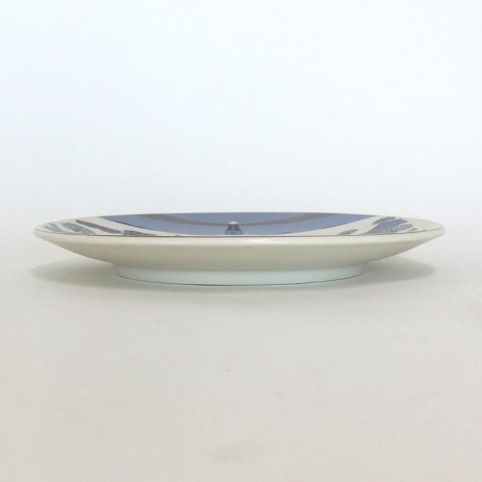 漁網で収穫した魚を運んでいる人々、氷に小さな穴を開けて釣りを楽しむ人、これから穴を開ける人、砕氷した氷をどこかに運ぶらしき人など19世紀のフィンランドのクリスマスシーズンの風景がグレーがかった青と白に加え、アクセントとなる金色でライヤ・ウオシッキネン/Raija Uosikkinenらしい繊細なデザインで絵付けされています。