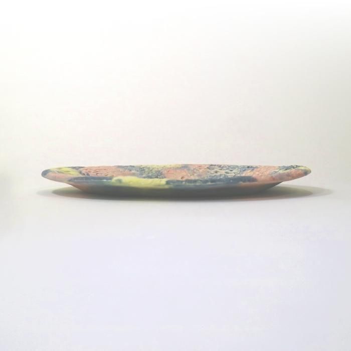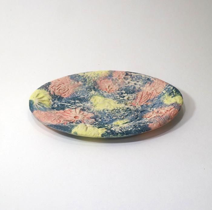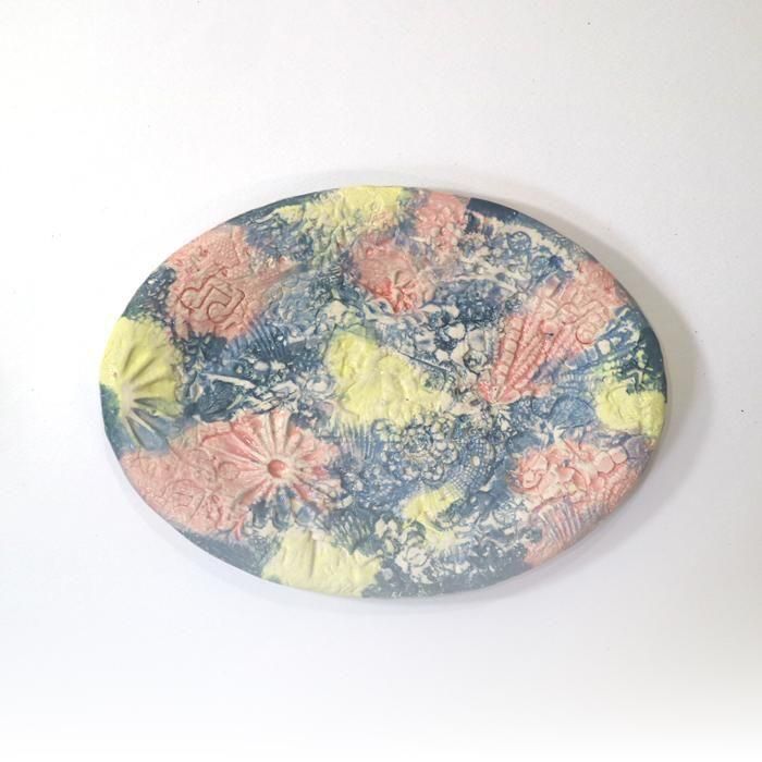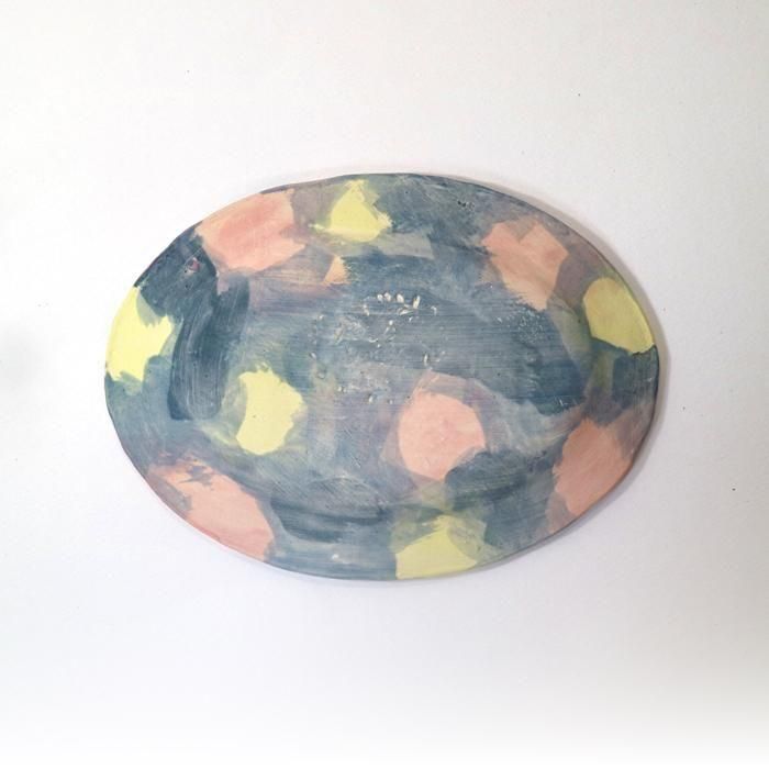 沖縄県立芸術大学陶芸コース卒後、沖縄の工房を経て、現在千葉の工房にて作陶されています中村かおりさんの「宝探し」が楽しい彩り豊かなオーバルプレート/1です。