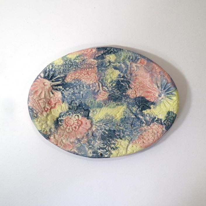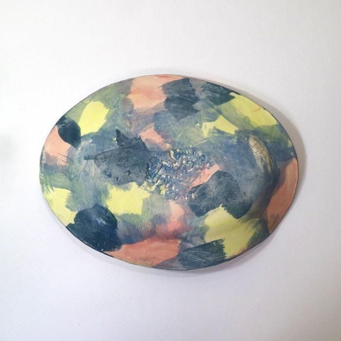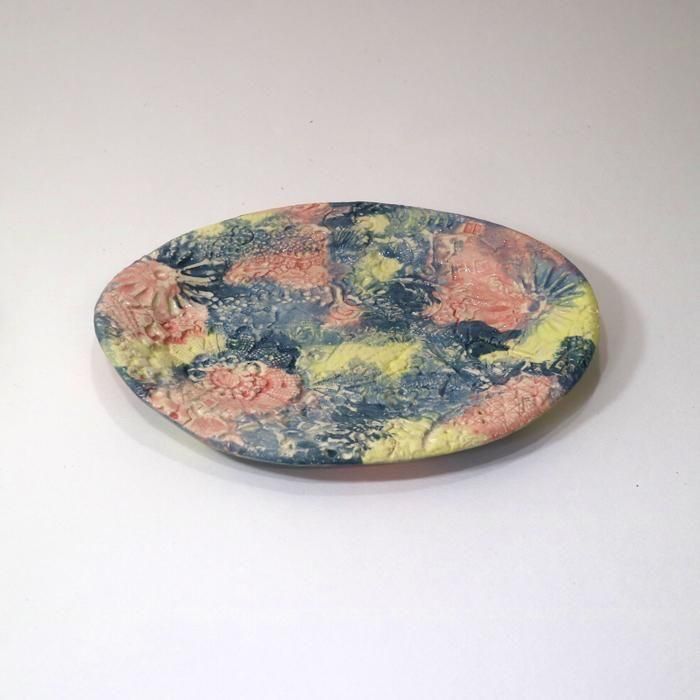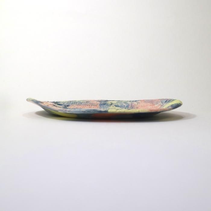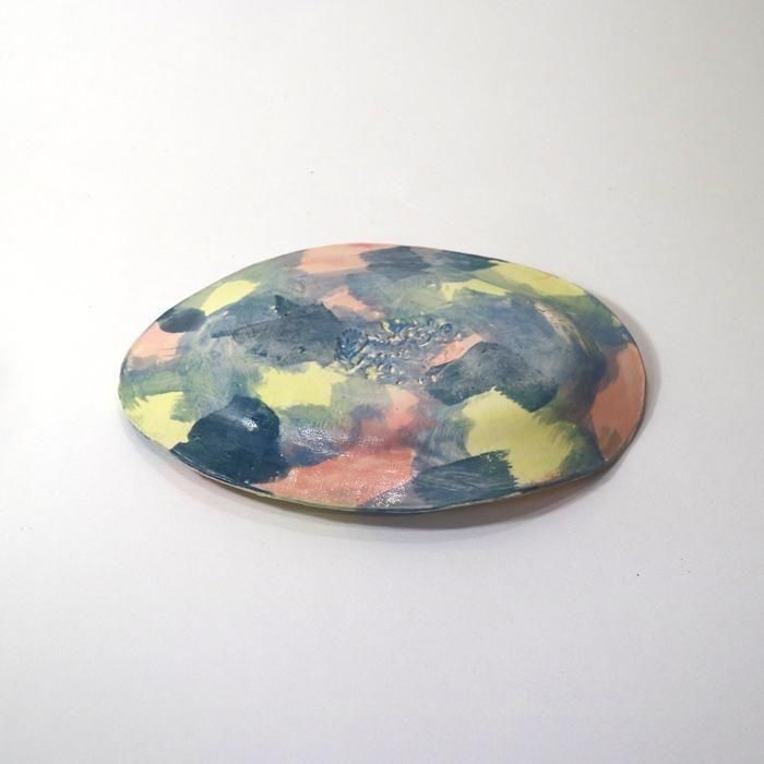 沖縄県立芸術大学陶芸コース卒後、沖縄の工房を経て、現在千葉の工房にて作陶されています中村かおりさんの「宝探し」が楽しい彩り豊かなオーバルプレート/2です。