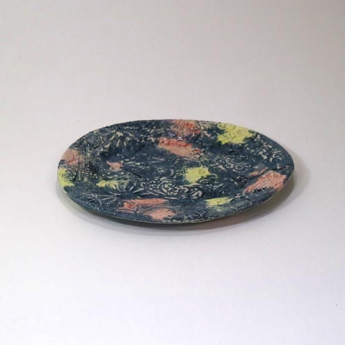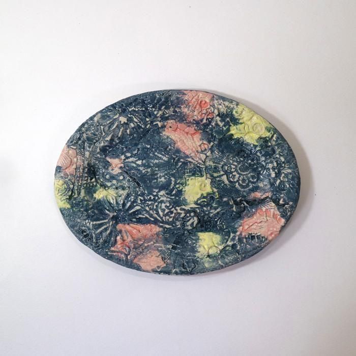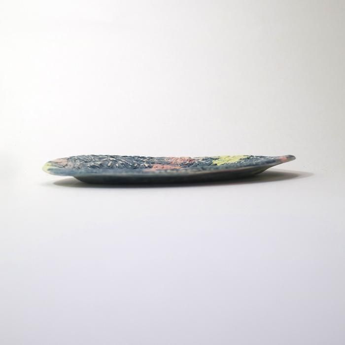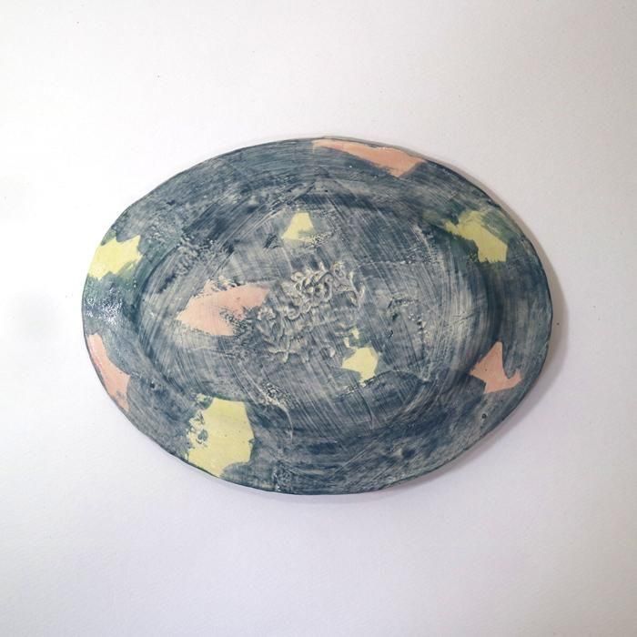 沖縄県立芸術大学陶芸コース卒後、沖縄の工房を経て、現在千葉の工房にて作陶されています中村かおりさんの「宝探し」が楽しい彩り豊かなオーバルプレート/3です。