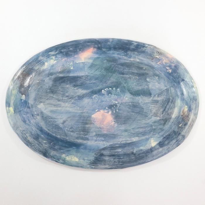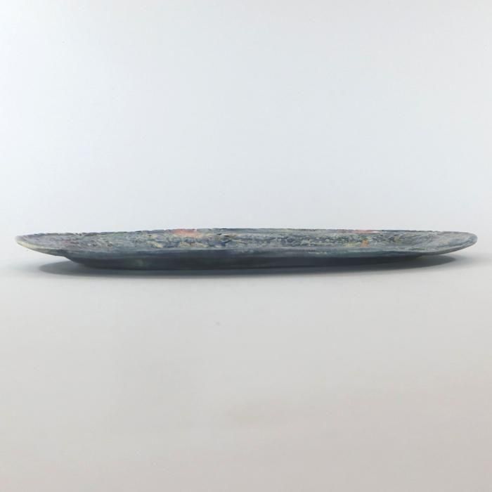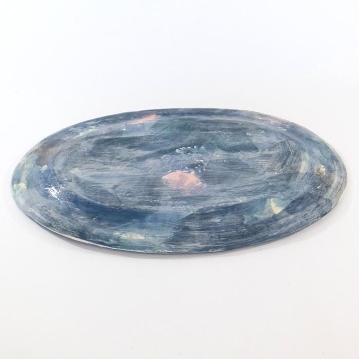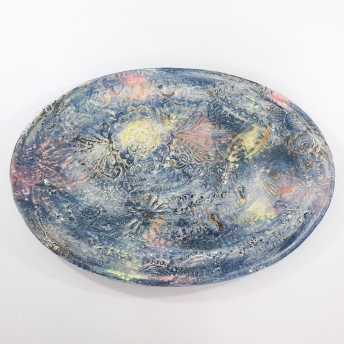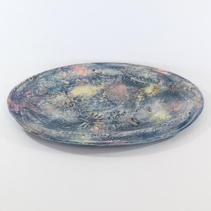 沖縄県立芸術大学陶芸コース卒後、沖縄の工房を経て、現在千葉の工房にて作陶されています中村かおりさんの「宝探し」が楽しい彩り豊かな「たからものオーバルプレート/大/1です。