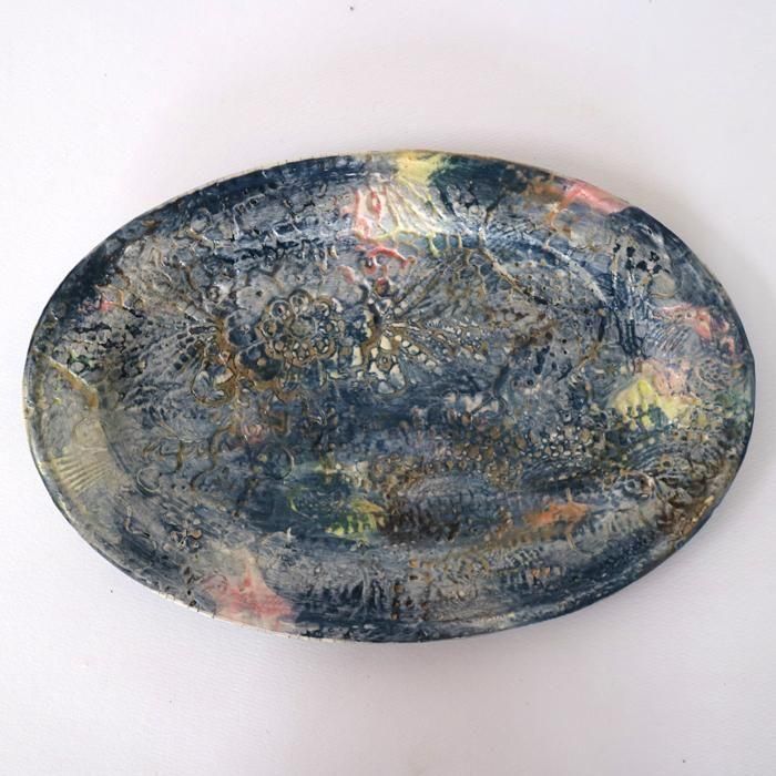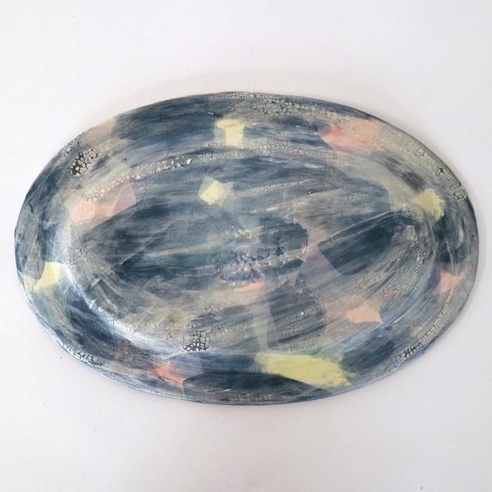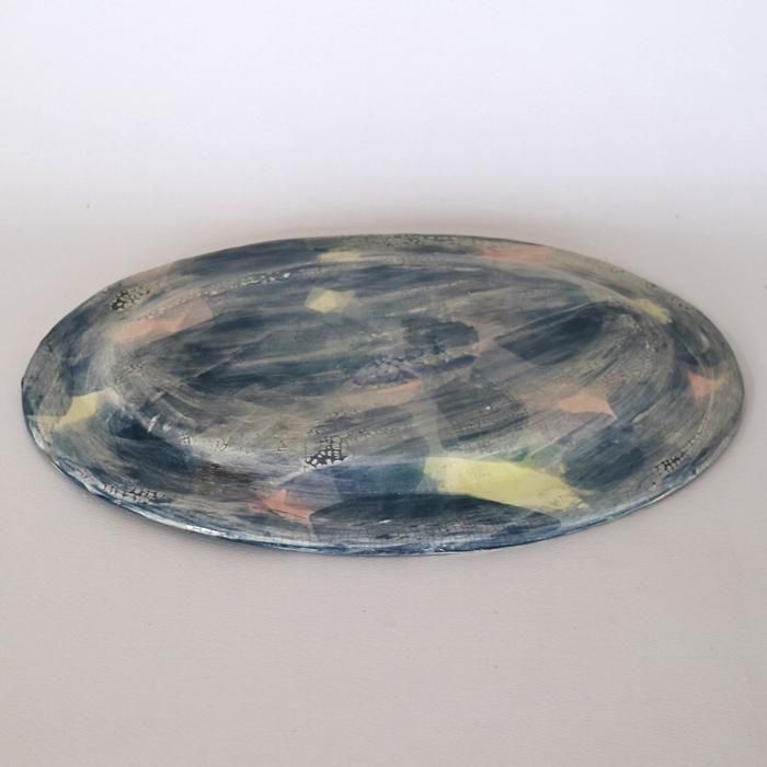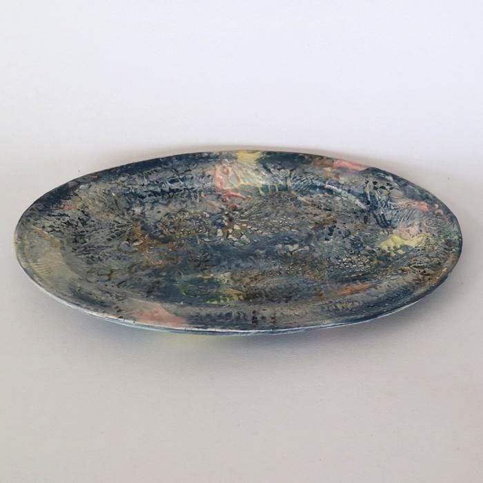沖縄県立芸術大学陶芸コース卒後、沖縄の工房を経て、現在千葉の工房にて作陶されています中村かおりさんの「宝探し」が楽しい彩り豊かなオーバルプレート/2です。