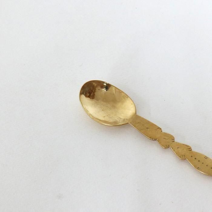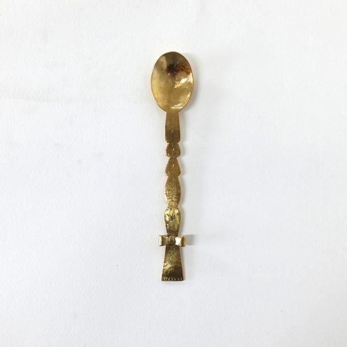 金属で大きなモニュメントなどを制作するBONZE工房にてアシスタントされた後独立し、埼玉の工房にて「口当たりの良い、楽しいカトラリー」を心がけて製作されていますitto/イットさんの真鍮できたリボンテーブルスプーン/1です。