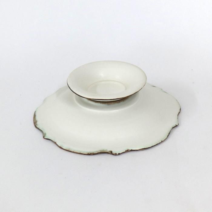 沖縄県立芸術大学陶芸コース卒後、沖縄の工房を経て、現在千葉の工房にて作陶されています中村かおりさんのコンポート/白×ブロンズ/1です。