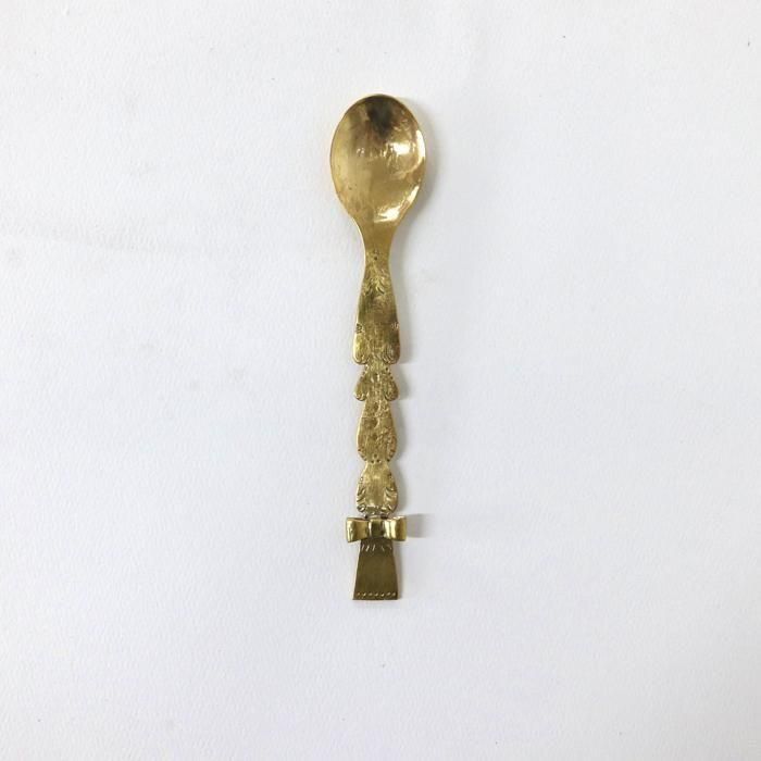 金属で大きなモニュメントなどを制作するBONZE工房にてアシスタントされた後独立し、埼玉の工房にて「口当たりの良い、楽しいカトラリー」を心がけて製作されていますitto/イットさんの真鍮できたリボンテーブルスプーン/2です。
