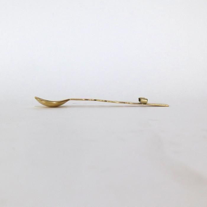 金属で大きなモニュメントなどを制作するBONZE工房にてアシスタントされた後独立し、埼玉の工房にて「口当たりの良い、楽しいカトラリー」を心がけて製作されていますitto/イットさんの真鍮できたリボンテーブルスプーン/3です。