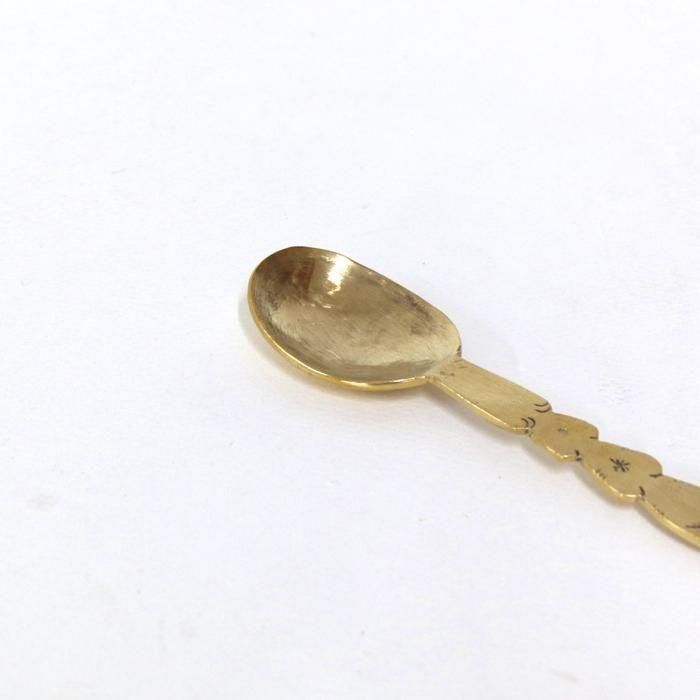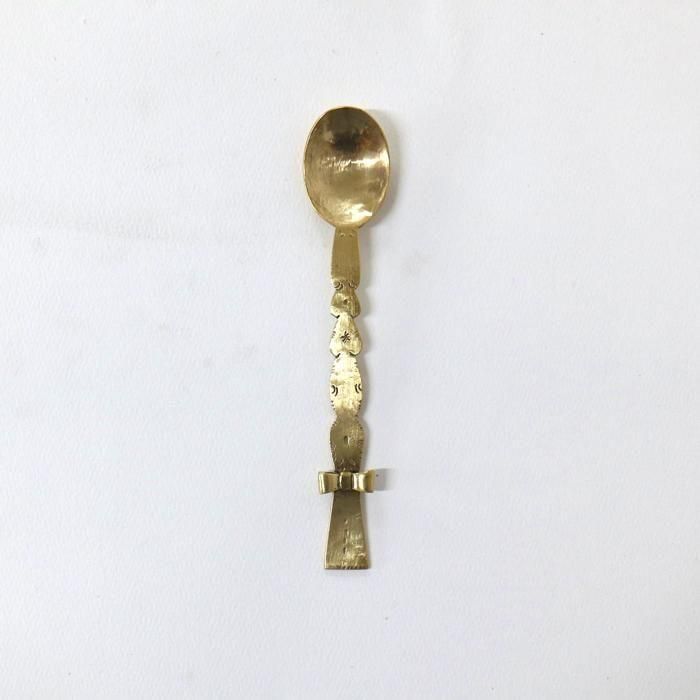 金属で大きなモニュメントなどを制作するBONZE工房にてアシスタントされた後独立し、埼玉の工房にて「口当たりの良い、楽しいカトラリー」を心がけて製作されていますitto/イットさんの真鍮できたリボンテーブルスプーン/4です。