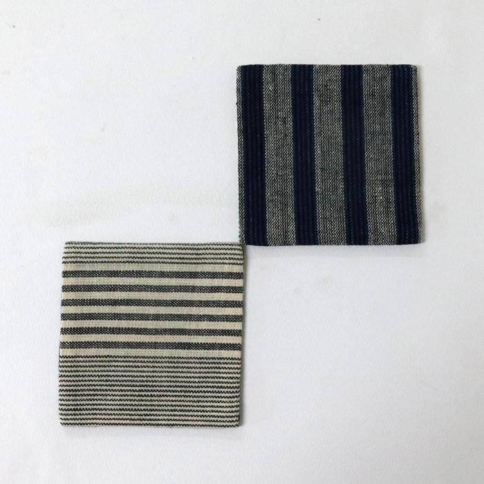 濃淡の青(藍)、異なるタイプの縞の組合せに中村奈津美さんの作家としての高い技、矜持と温かい心遣いが感じられるコースターです。