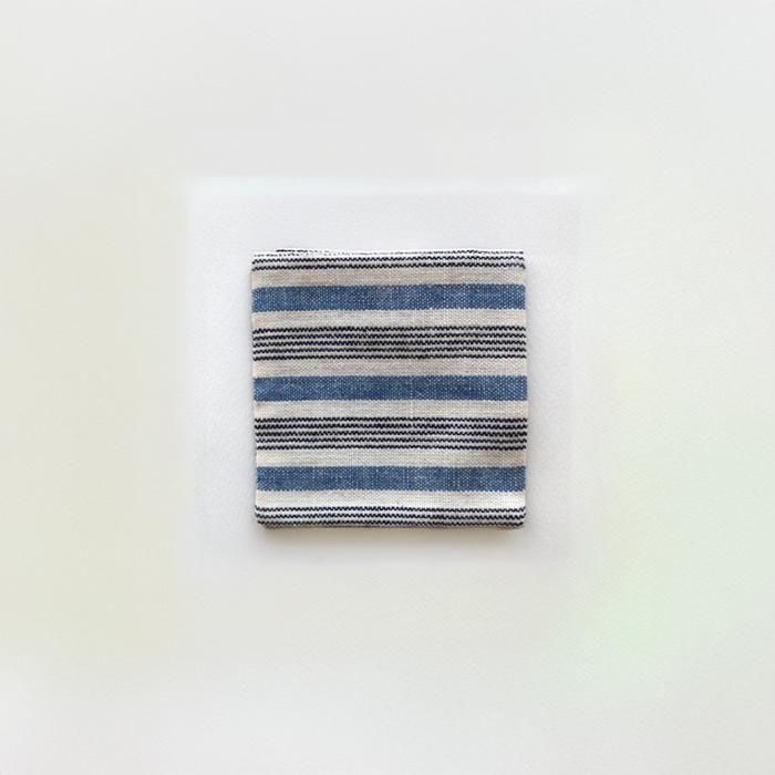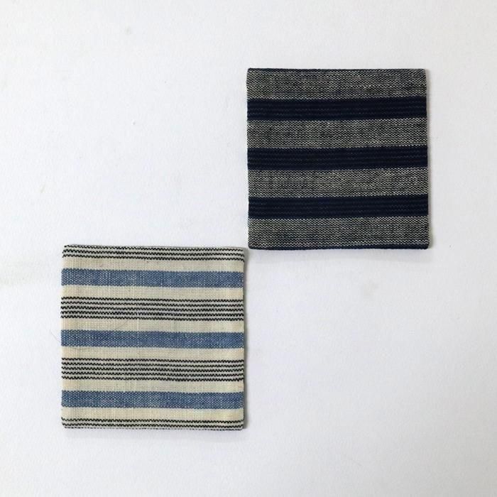 濃淡の青(藍)、異なるタイプの縞の組合せに中村奈津美さんの作家としての高い技、矜持と温かい心遣いが感じられるコースターです。