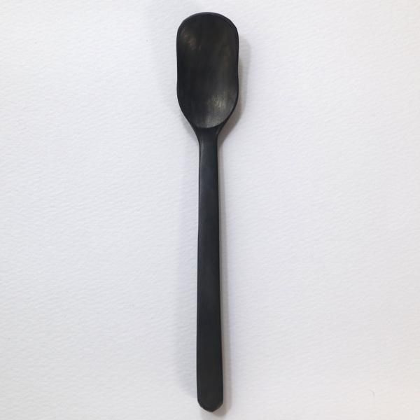 黒漆スプーン/S/antiqueライ/は当店で扱わせていただいていますフレル/山田哲也さんのカトラリーの中では一番小ぶりのカトラリーで、スクープする部分も所謂アイスクリームスプーンと呼ばれるスクエアタイプですがアイスクリームだけでなくデザートスプーンにも適したカトラリーとなっています。