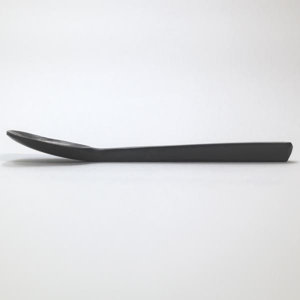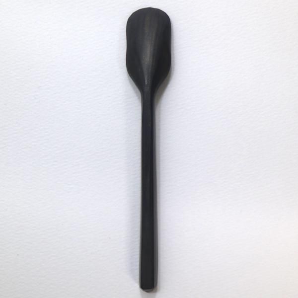 岡山県から移住された島根県大田市の自然に囲まれた工房で様々な木の素材を使って製作されていますフレル/山田哲也さんの上質の山桜に漆に黒と白の色を混ぜて着色し、吹き漆仕上げのシックな雰囲気のantiqueラインカトラリーから黒漆スプーン/S/antiqueライ/です。