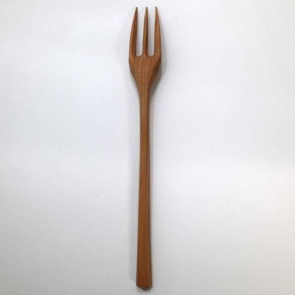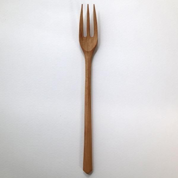 島根県太田市の自然に囲まれた工房で様々な木の素材を使って製作されていますフレル/山田哲也さんの木目が美しい特有の赤みがかった温かい雰囲気の山桜フォーク/Lです。