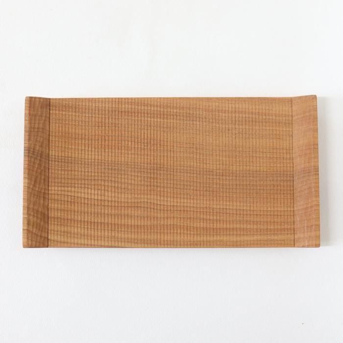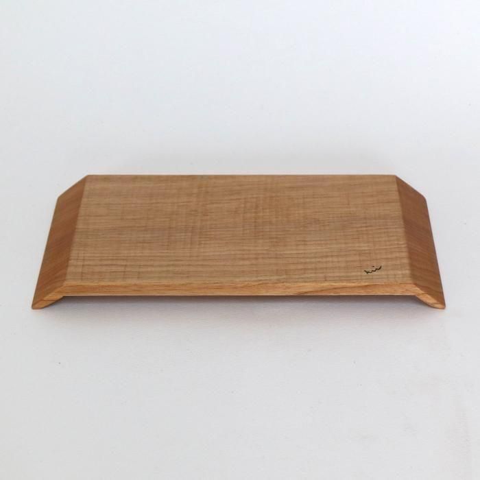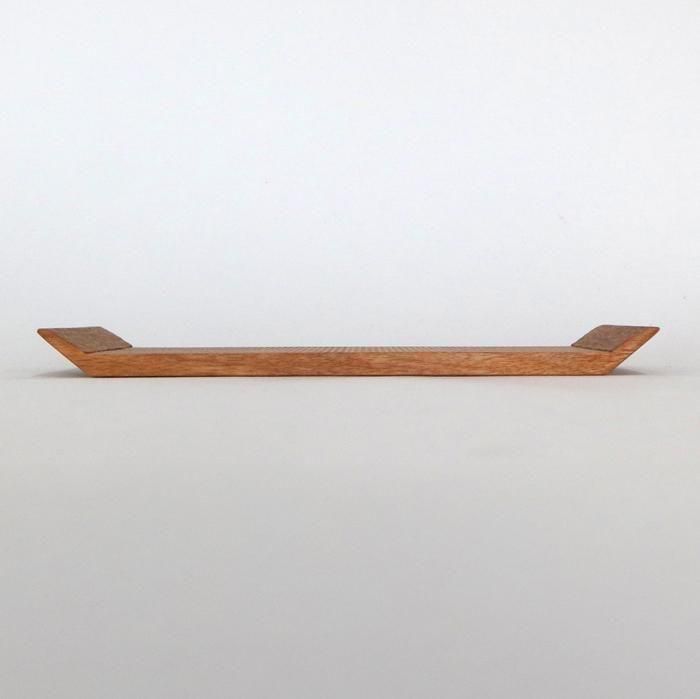 毎日使ってほしいからこそ、デザインは極力シンプルにと”natural&simple”をコンセプトに佐世保の工房で製作活動をされています堀宏治さんの胡桃材を使用したハンドルにもなる長辺が斜めに立ち上がったカップトレイです。