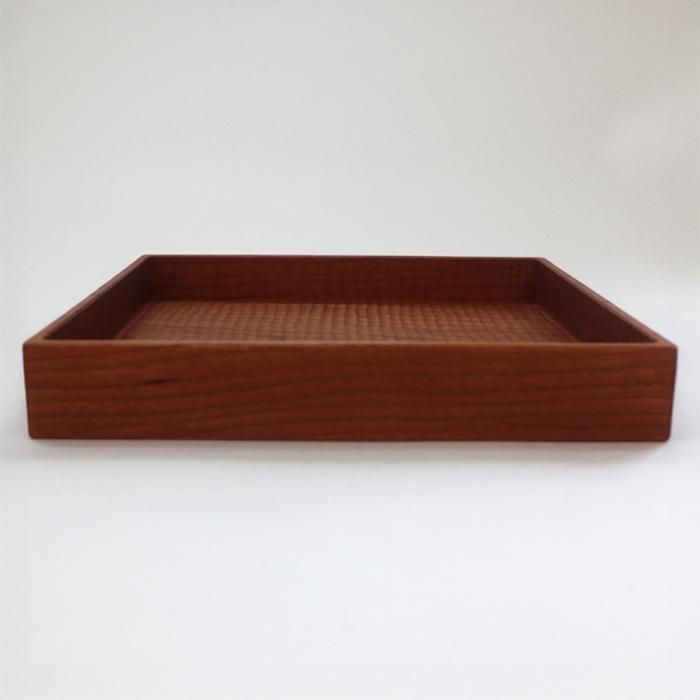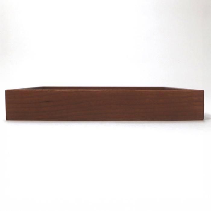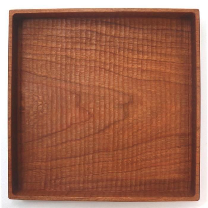 毎日使ってほしいからこそ、デザインは極力シンプルにと”natural&simple”をコンセプトに佐世保の工房で製作活動をされています堀宏治さんの赤みを帯びた明るめの色めの桜材を使用した縁が高いさくら深四角(正方)盆です。