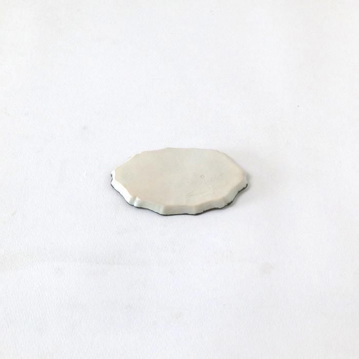 輪花オーバル板皿/小には濃淡はありますがこのような表面の草花のスケッチとバックサインが入っています。
