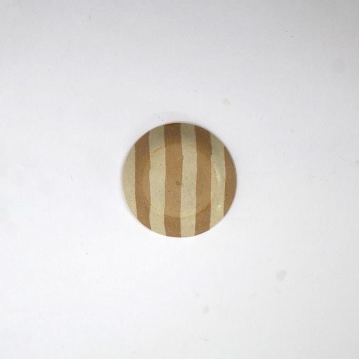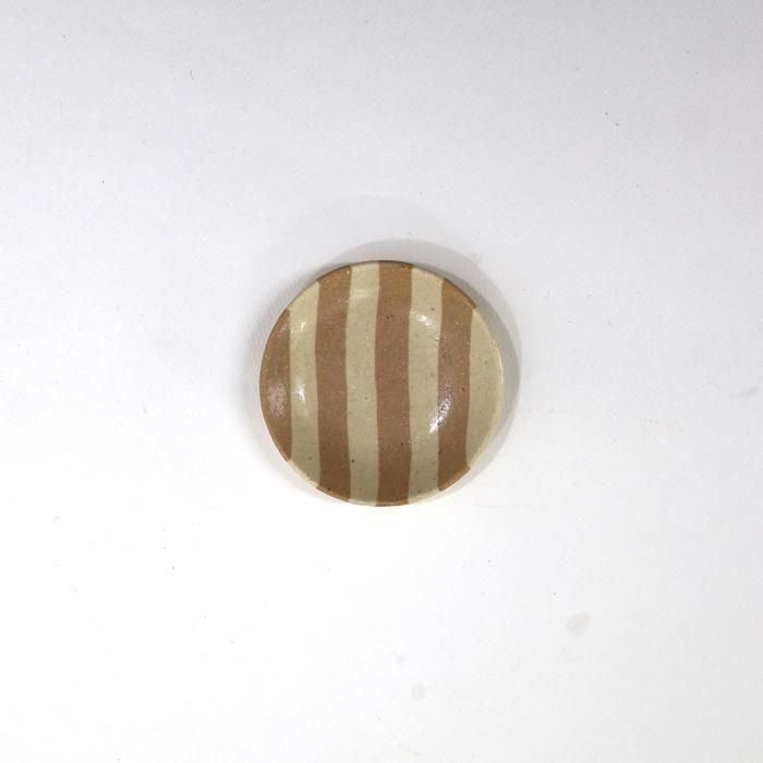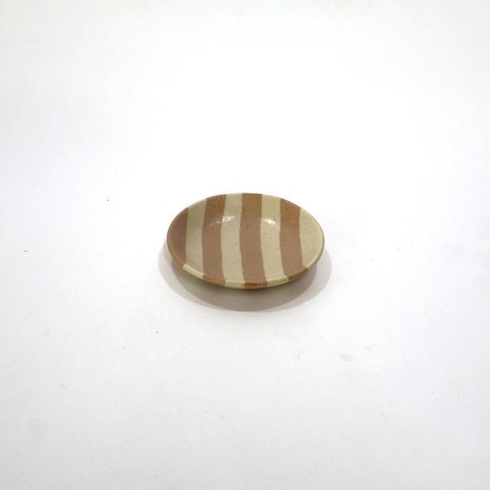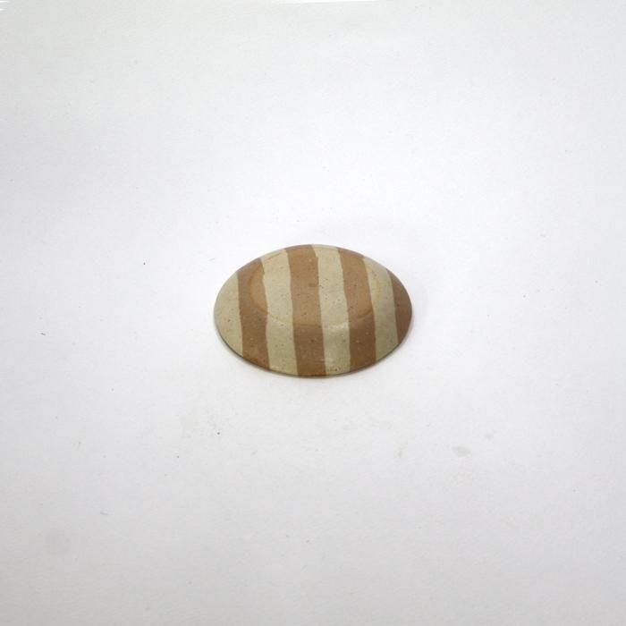 田中ちあきさんらしい穏やかな雰囲気のエクリュ(生成り)とベージュの練り込みストライプまめ皿は方向によってストライプだったりボーダーだったりで雰囲気が変わるのが面白い趣向となっています。