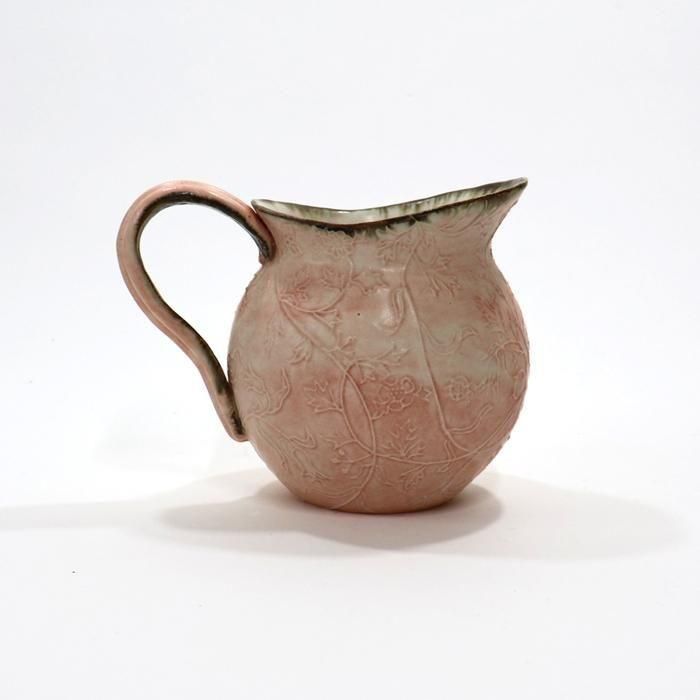 沖縄県立芸術大学陶芸コース卒後、沖縄の工房を経て、現在千葉の工房にて作陶されています中村かおりさんの丸ピッチャー/ピンクです。
