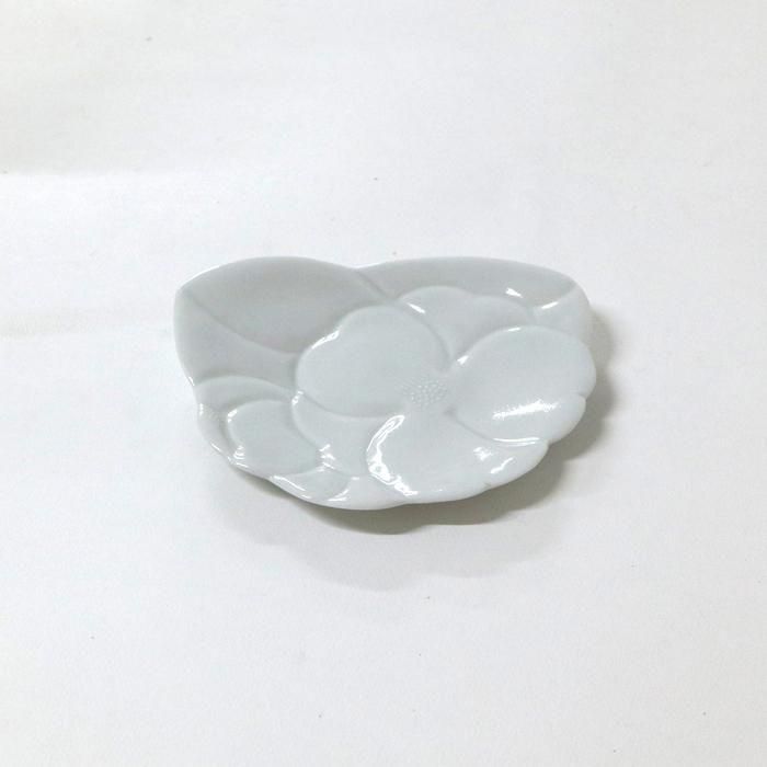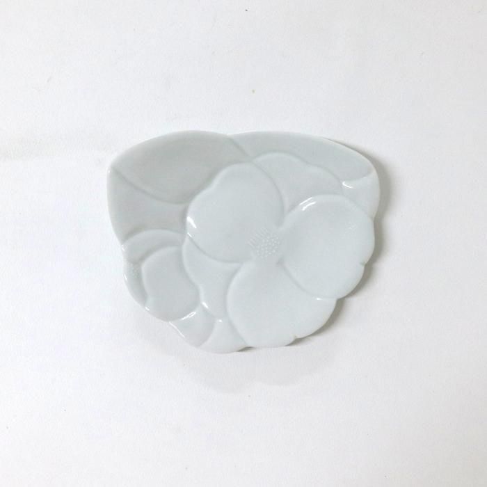 石膏型を使用し、磁土を用いて型でしかできない表現やデザインを意識し製作されてい加藤好康さんと加藤智恵美さんご夫妻のユニット工房「tete/てて」さんの椿をモチーフにして製作された椿菓子皿です。