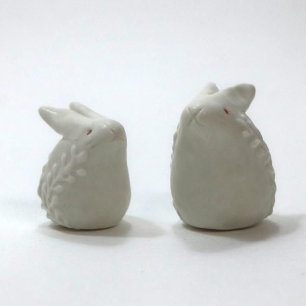 沖縄県立芸術大学陶芸コース卒後、沖縄の工房を経て、新しく北千住に移動された工房にて作陶されています中村かおりさんのオブジェ/親子うさぎです。