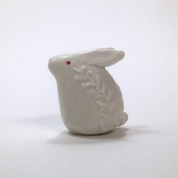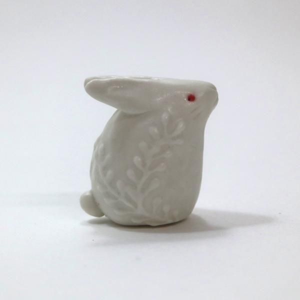 中村かおりさん拘りの美しい白、イッチンでの植物文様に加えお顔はもちろんですが後ろ姿の丸いお尻尾やお耳に何とも言えずキュートです。